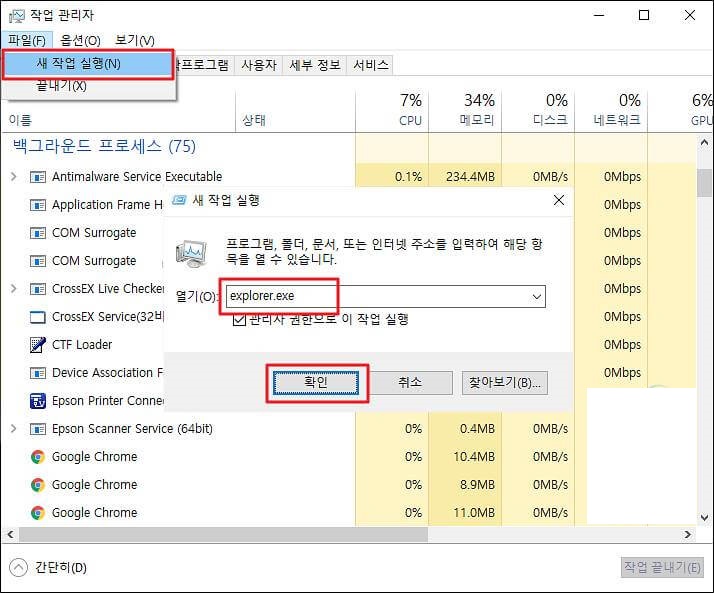 방법 1: 작업 관리자에서 파일 탐색기를 재시작합니다.