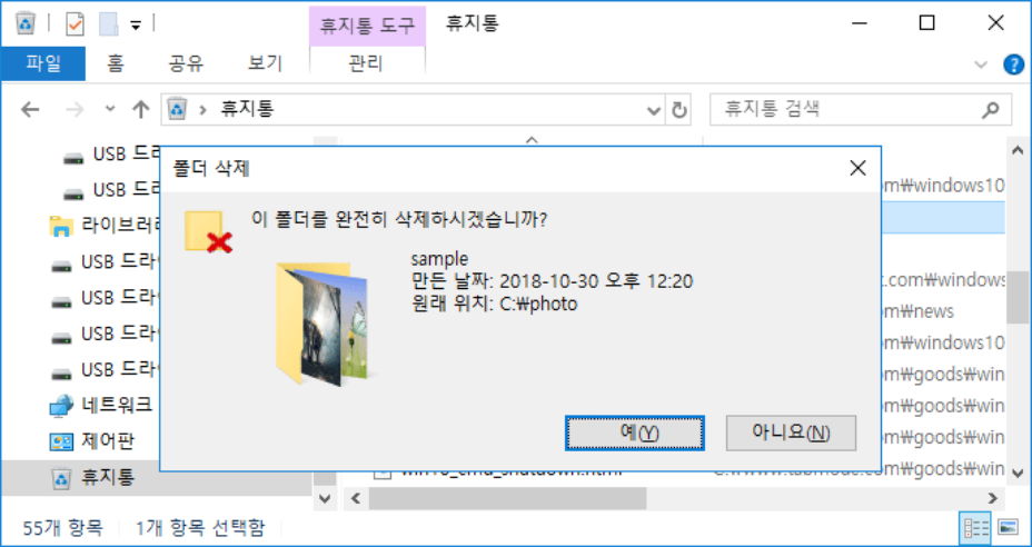 자동으로 파일 삭제되는 휴지통을 중지하는 방법은 무엇인가요?
