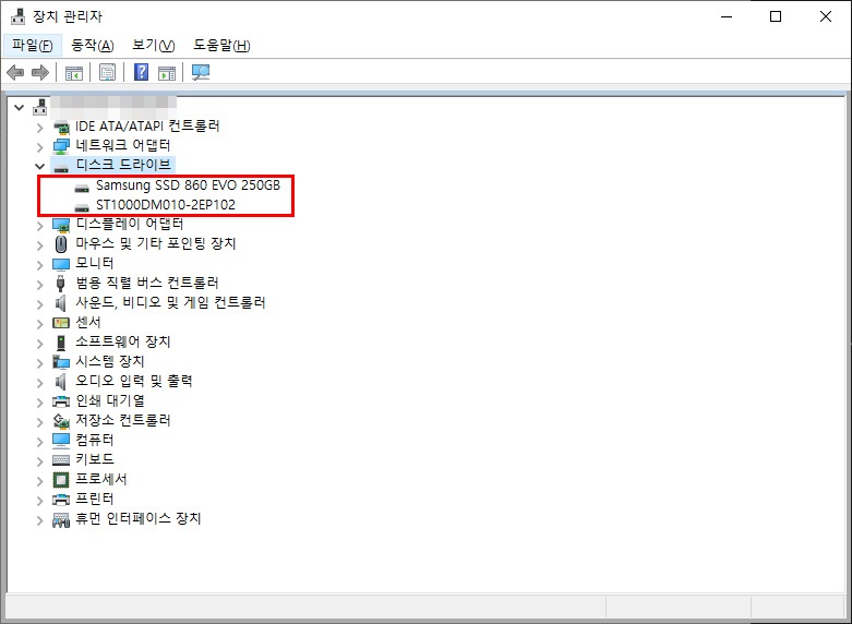 2단계: 장치 관리자 창에서 드라이브 트리를 확장하여 드라이브 유형(SSD 또는 HDD)을 포함하여 컴퓨터에 연결된 모든 하드 드라이브의 이름을 확인합니다.