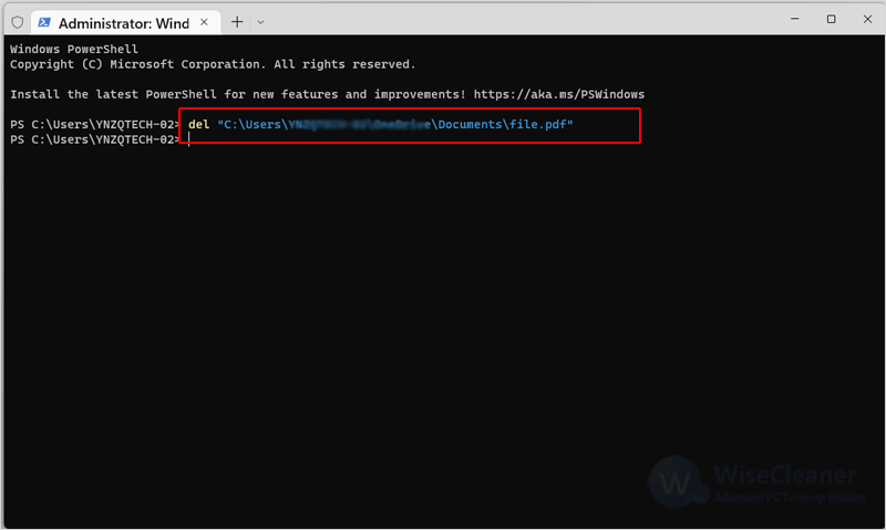 단계 2: 다음 명령어를 입력한 후 Enter 키를 눌러 파일/폴더를 강제로 삭제합니다.