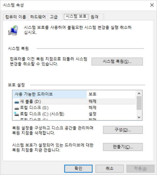 윈도우즈 10 이전 버전의 옵션을 사용하면 오래된 복원 지점은 삭제하고 최신 복원 지점은 유지할 수 있습니다.